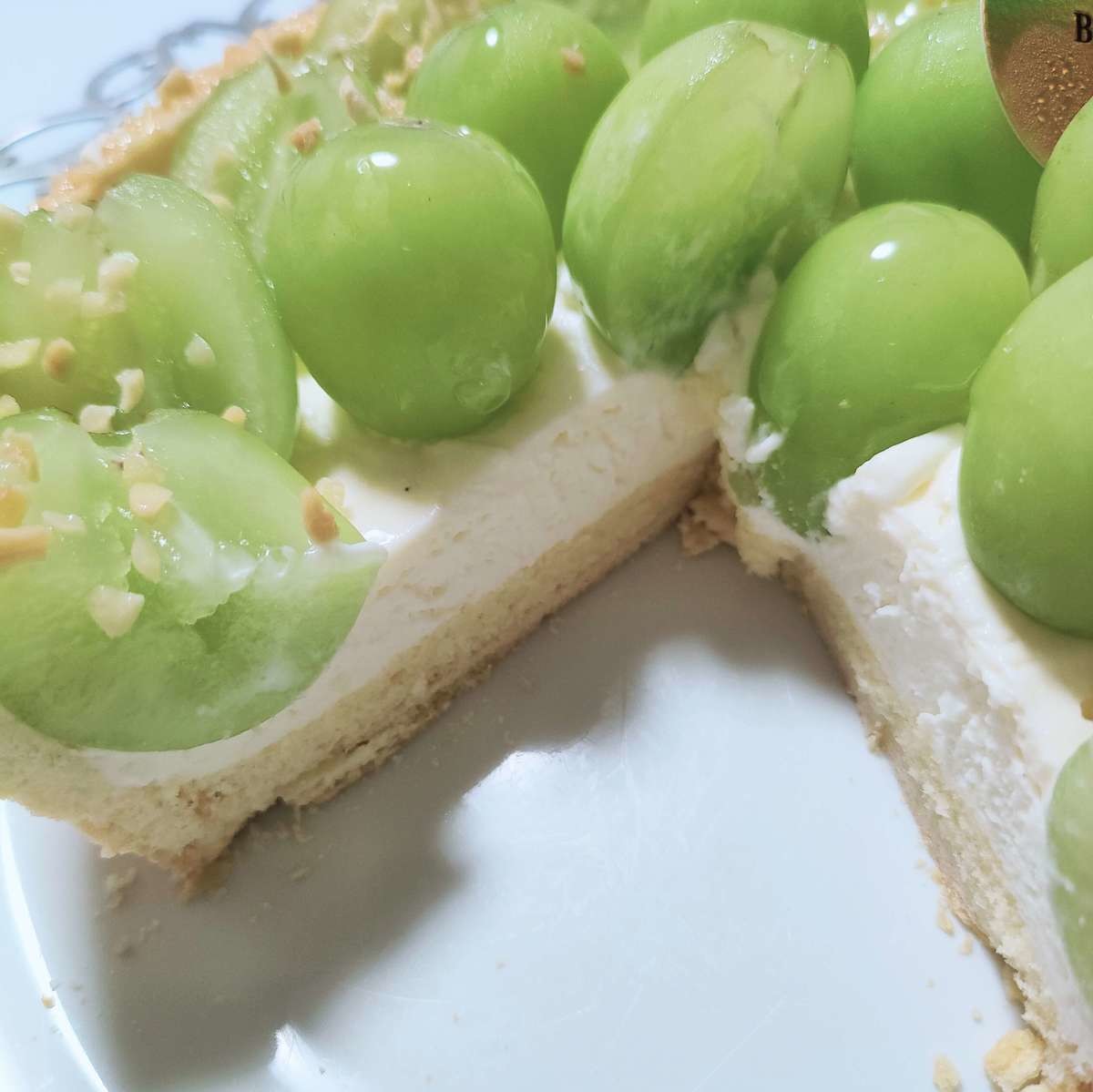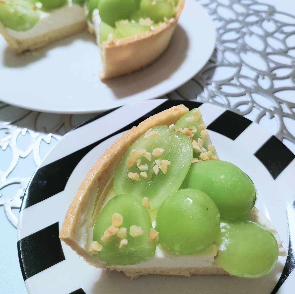 とろ~りとしたチーズクリームと、しっとりしたタルト生地が甘さ控えめなので、シャインマスカットの甘さとジューシーさが引き立ちます。