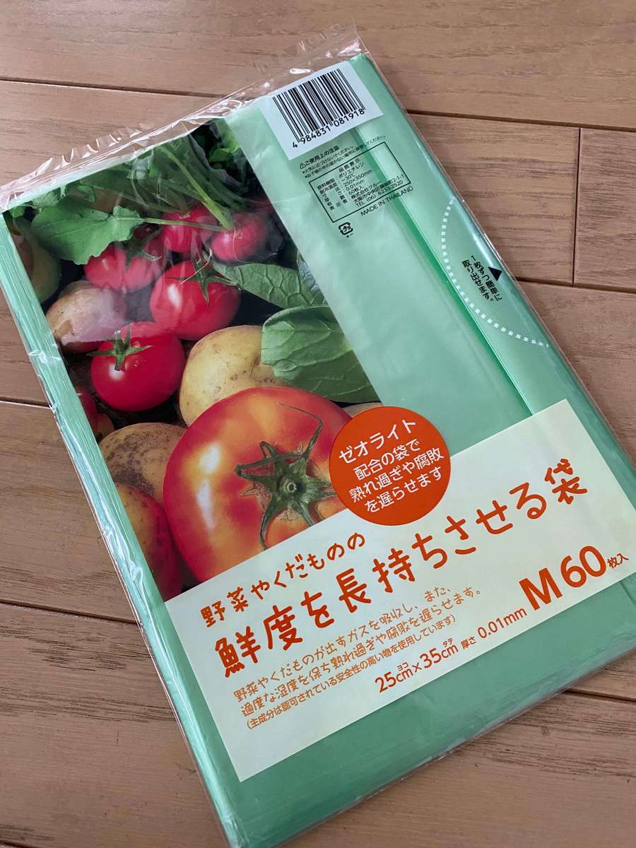 買ってきた野菜はビニールから出して、面倒でもこちらの袋に入れ替えています。