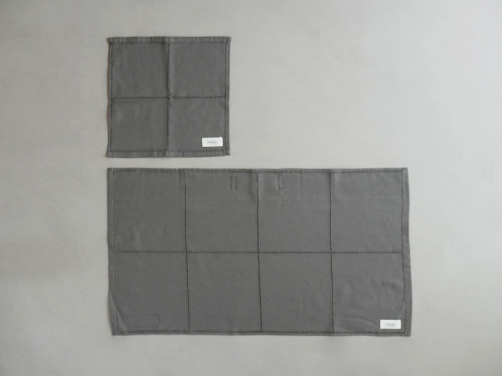生地表面に小さな糸の輪が等間隔に並ぶことで高い吸水性を持つテリー織りと、通気性が高く、軽くて丈夫で摩擦に強い平織。 肌触りは、ふんわりと包み込むような柔らかさがあり、肌馴染みも良く、プレーンな表面に施されたラインがより一層 洗練された印象に。