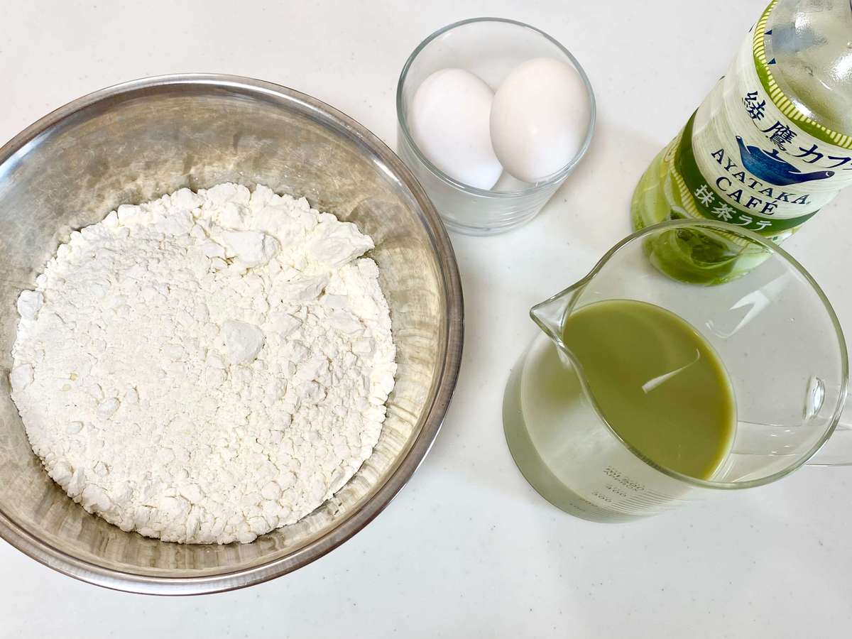 抹茶ラテ以外、基本いつものホットケーキの材料でOK!