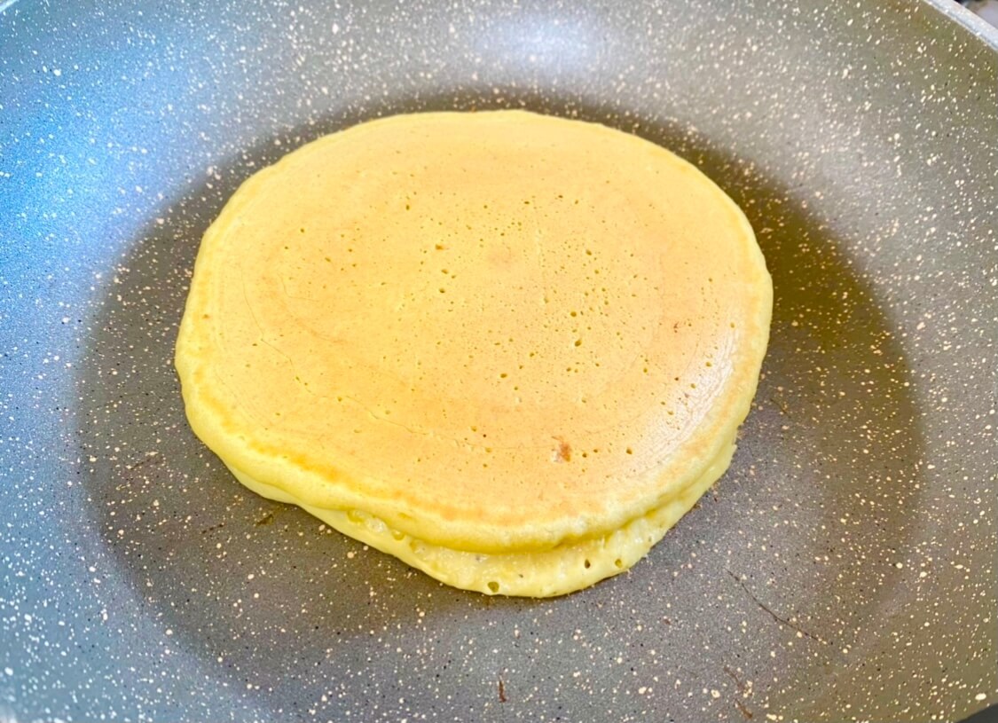 抹茶パンケーキ作り方③ひっくり返して裏面も焼いていく