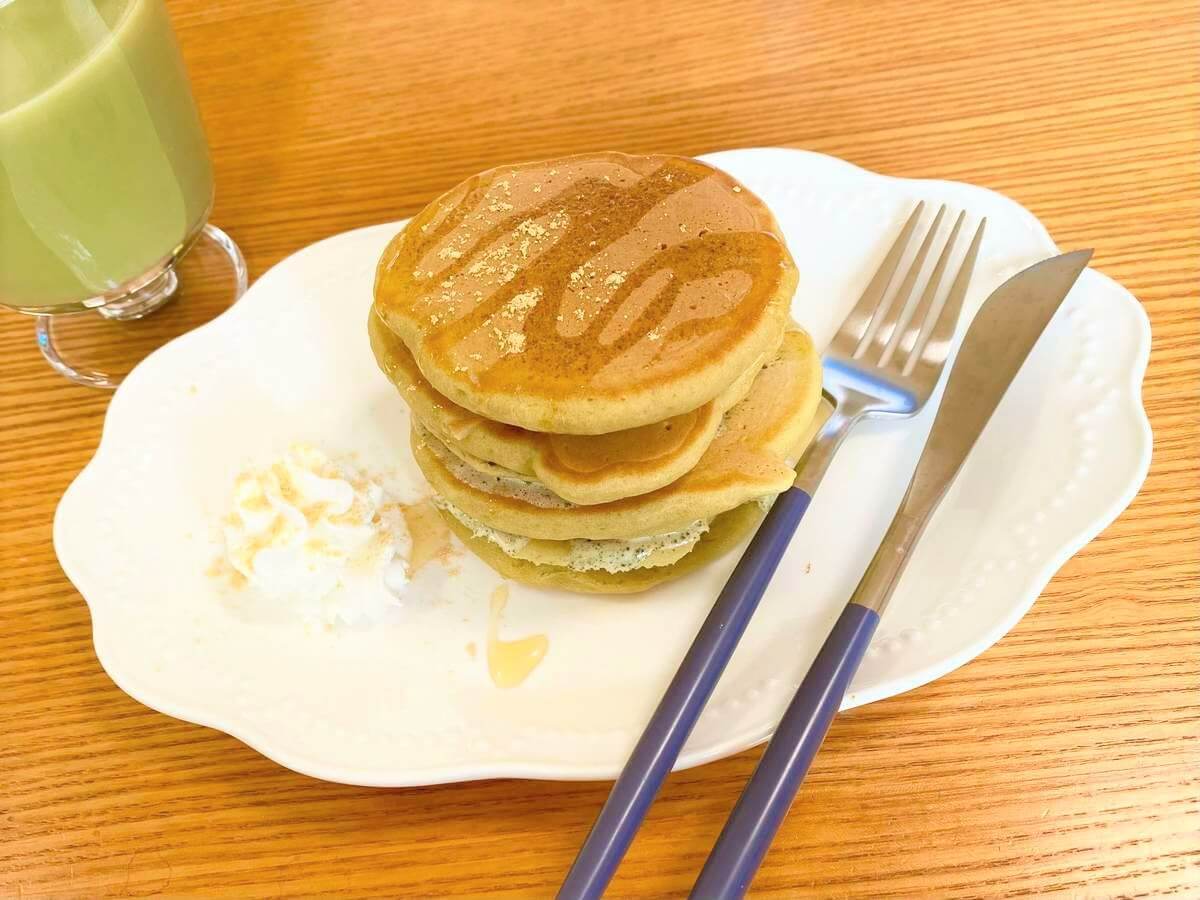「綾鷹カフェ 抹茶ラテ」で作った抹茶パンケーキの完成!