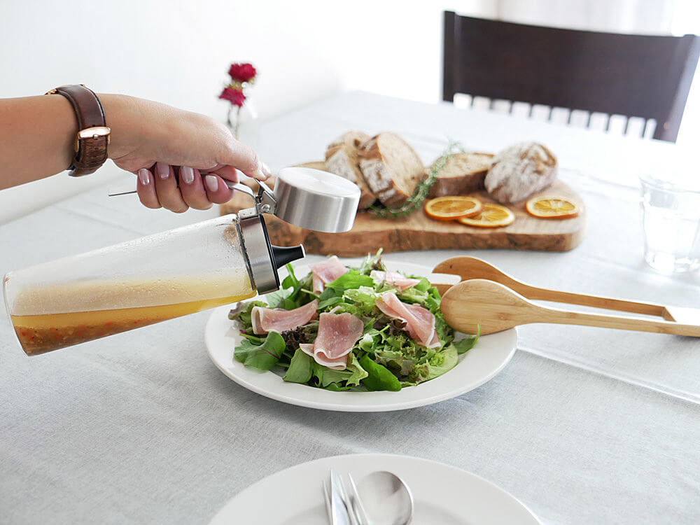 手作りドレッシングなどの保存容器としても使えるオイル&ビネガーボトル。