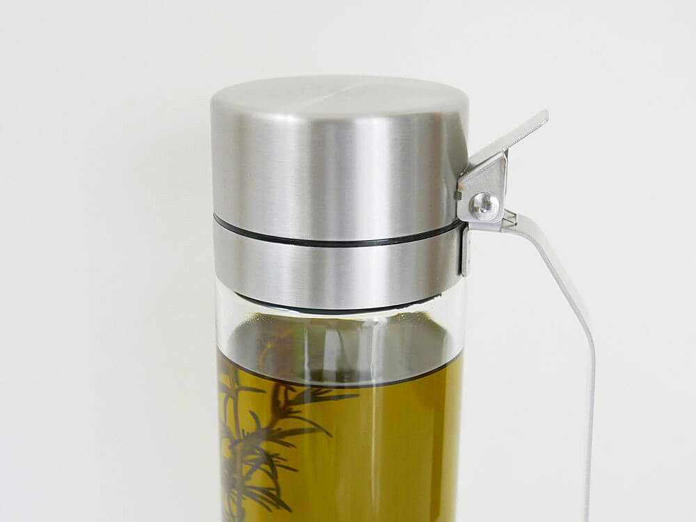 ガラス素材(耐熱温度差 120℃)のボトルに、蓋は高級ステンレスの18-8ステンレススチールを使用。