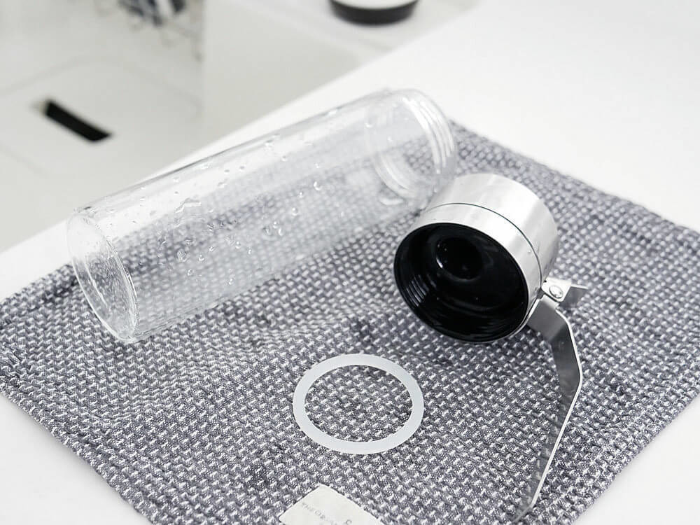蓋を外し、パッキンも取り外すことが出来るのでしっかり洗えて衛生的。また、耐熱温度差120℃のガラス素材なので煮沸消毒をすることも出来ます。