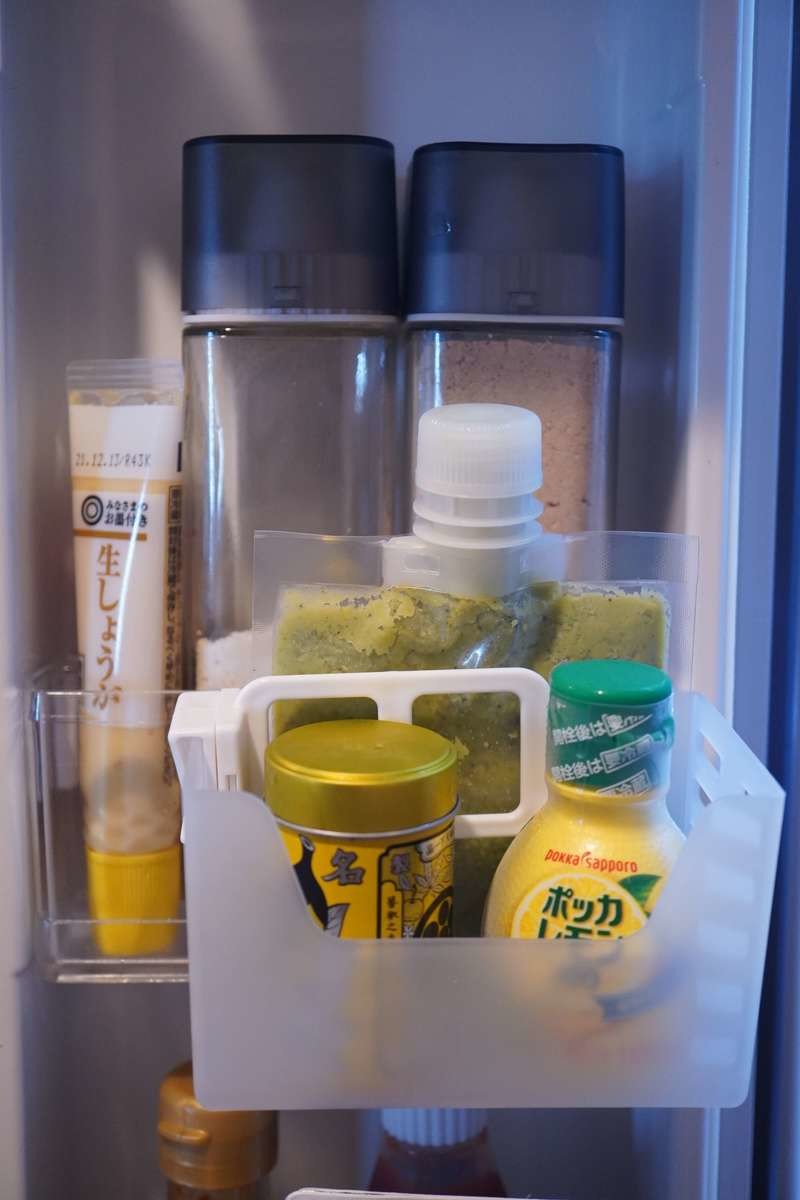先ほど紹介した「冷蔵庫ドアポケット仕切り」を使えばドアを開けた際に調味料が動いてごちゃごちゃしてしまうことはなく、きちんと収納することができます。
