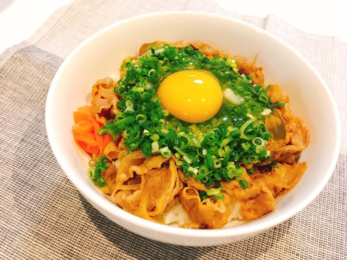 今回は、刻んだねぎとたまごをトッピングして、『ねぎ玉牛丼』にアレンジしました♪