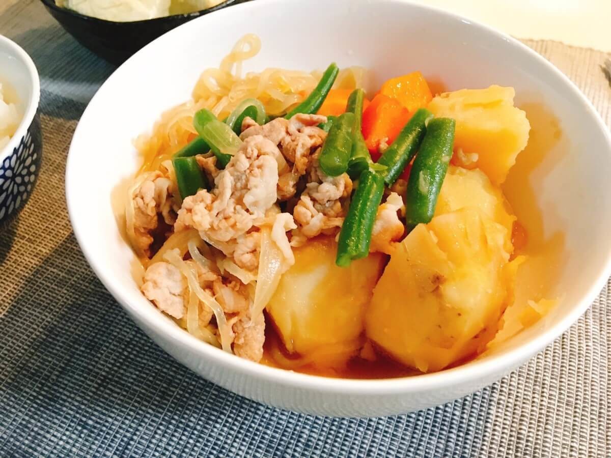 牛肉のうま味が詰まったつゆを使っているので、いつもより味が決まっている気がします…! 豚の肉じゃがもさらに深いこくと味わいに。甘めの味付けで、ごはんがどんどん進みました。