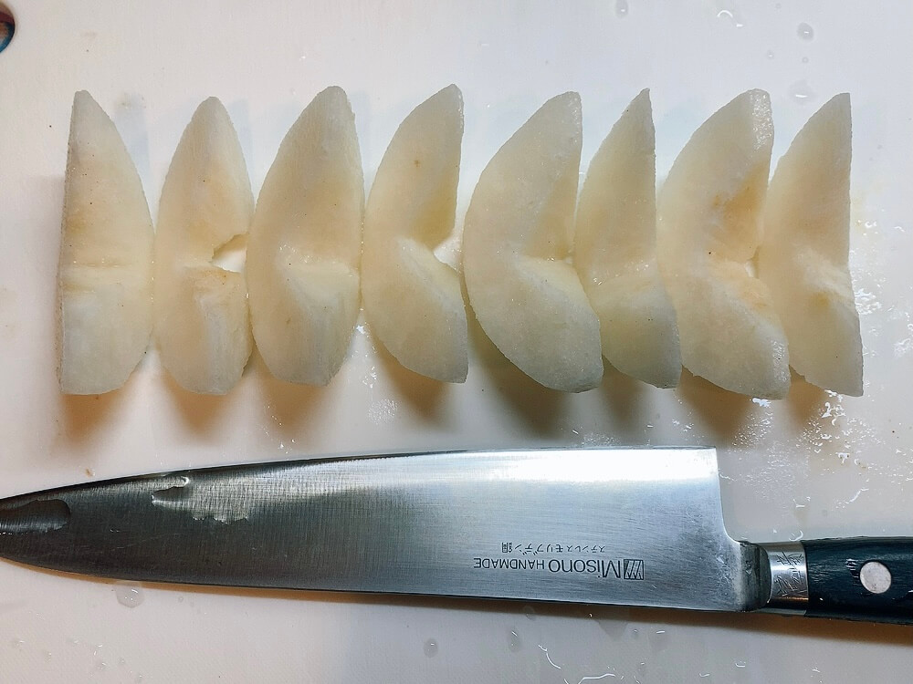 梨の皮はなるべく薄めにカット!ということを覚えておいてくださいね。