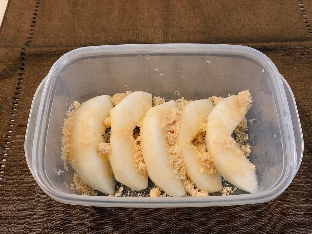 梨を甘くする方法③梨に砂糖をかけて、冷蔵庫で保存