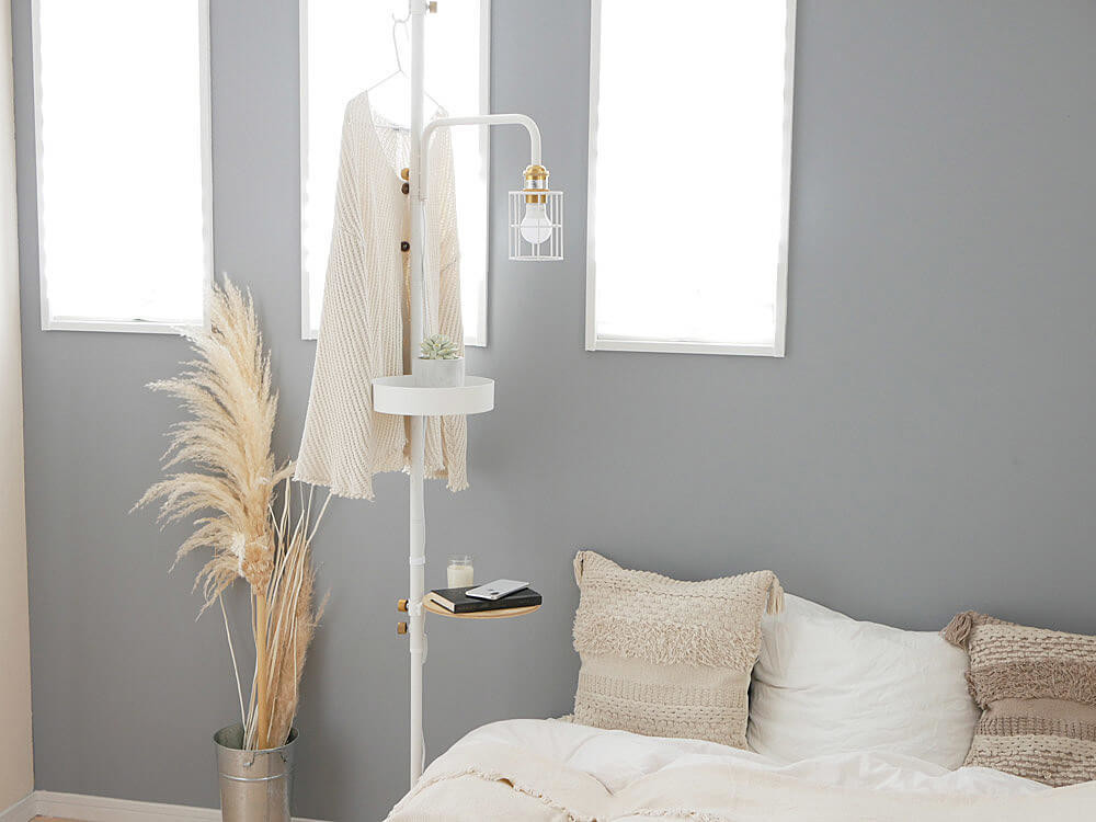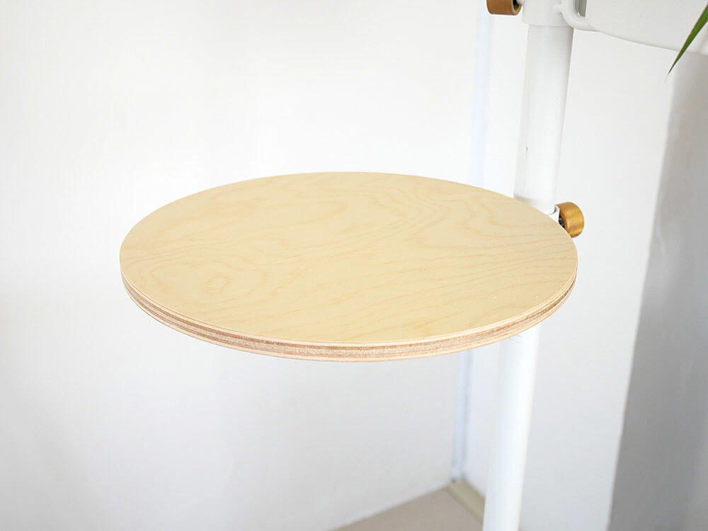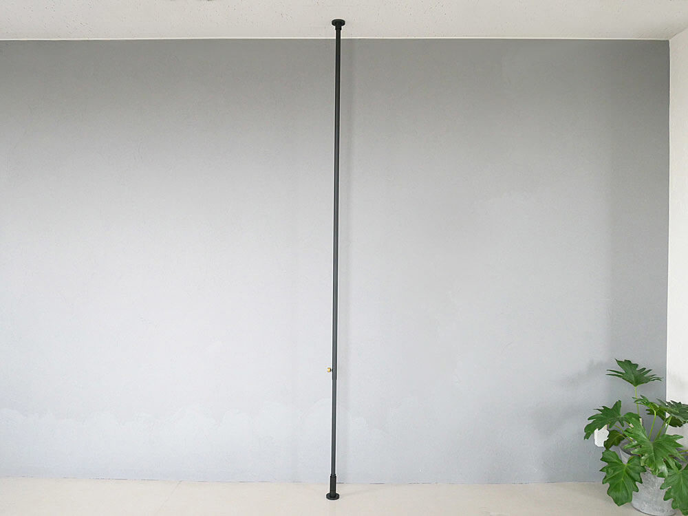 ちょっとした隙間収納としても使えて、小物や植物を置くだけで簡単なディスプレイコーナーにもなる、突っ張り棒というイメージを残しつつシンプルな構造なだけに自由度も高く、ランプやテーブル、フックなど自分だけのオリジナルの組合せが楽しめます。