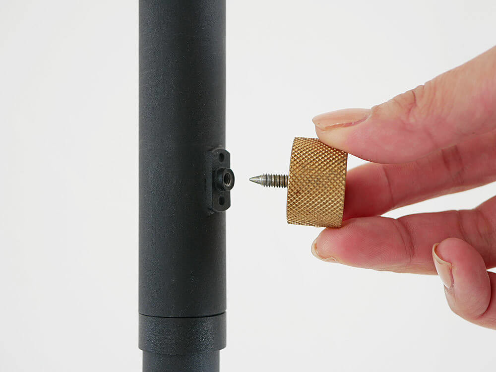 固定にはスクリューロック方式を採用。テンションロッドに真鍮のネジで穴を開ける事で固定できます。