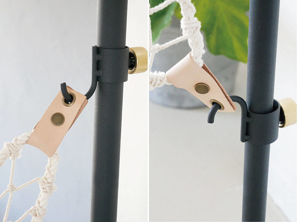 上の方にはロングフックを取り付けると、長さがあるため植物のハンギングしやすくなります。