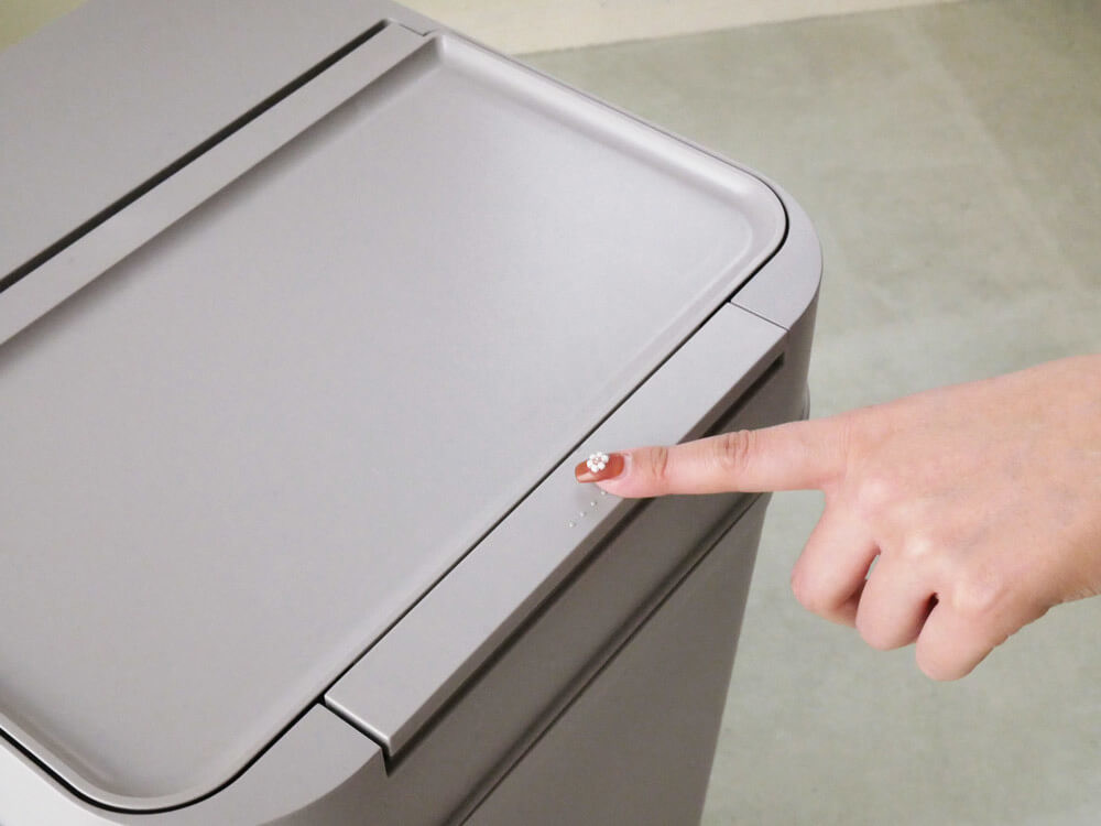 開閉時はフタについた大きなボタンをワンタッチでらくらく開閉。
