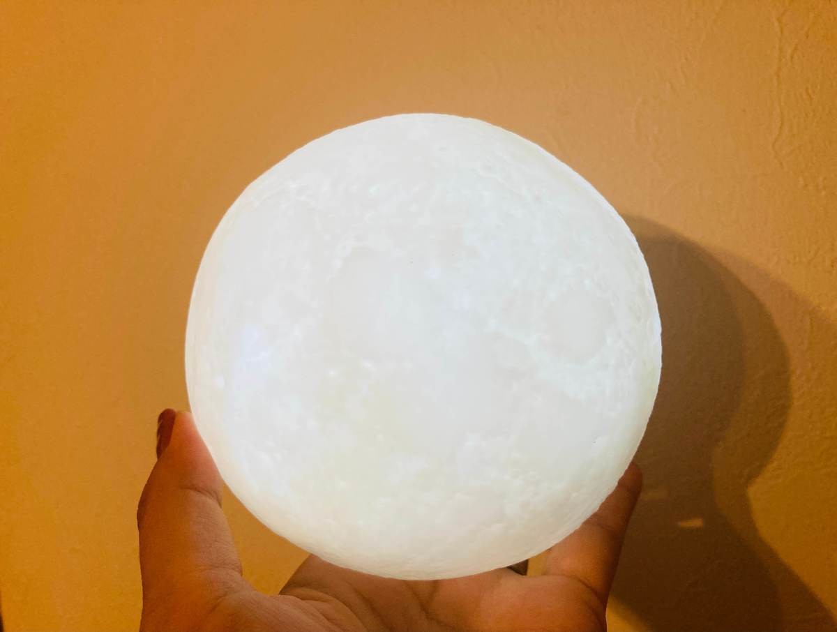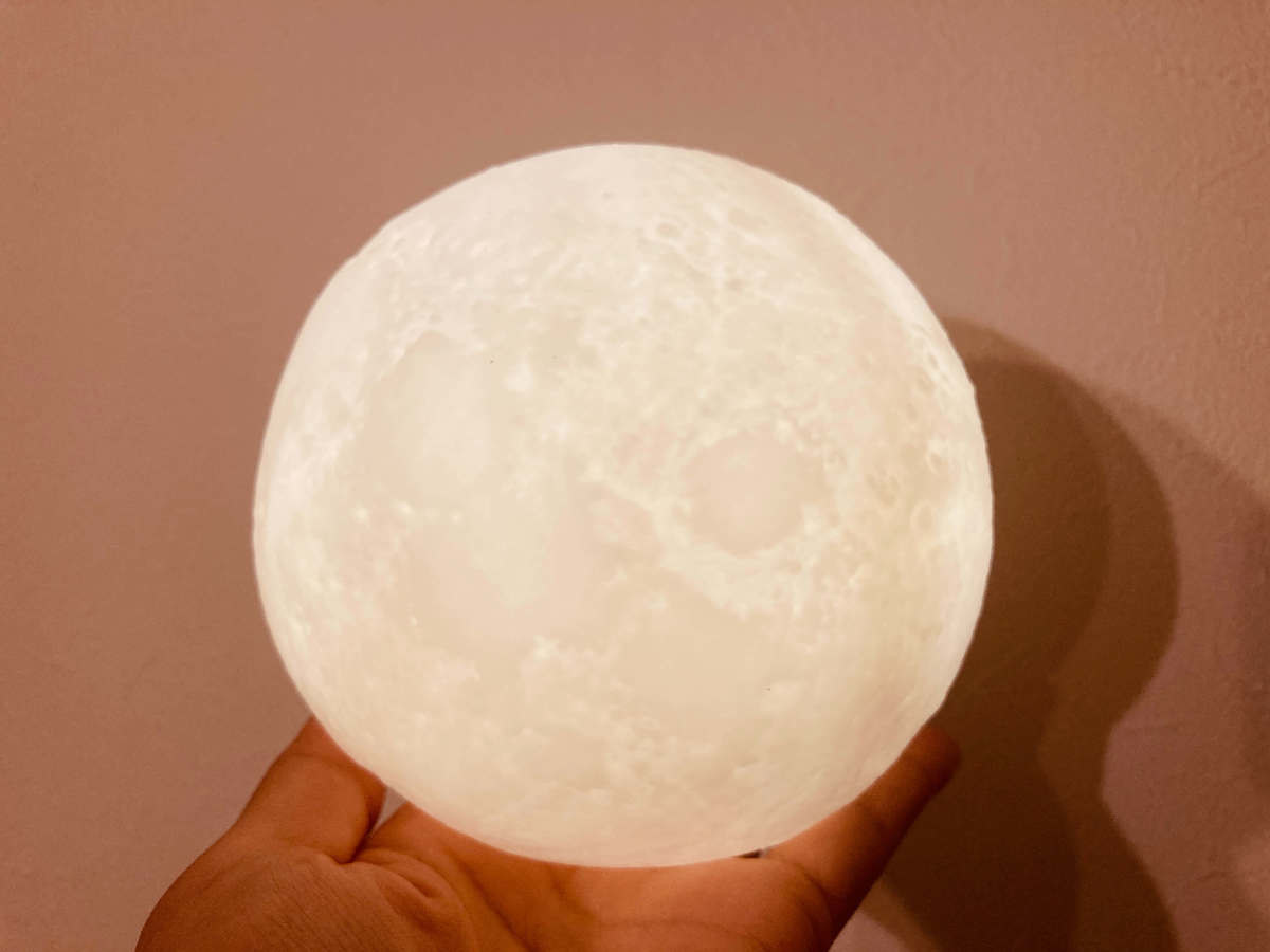 スリコから販売された「LEDムーンタッチライト 330円(税込)」は、月をモチーフにしたとってもキレイな間接照明です。