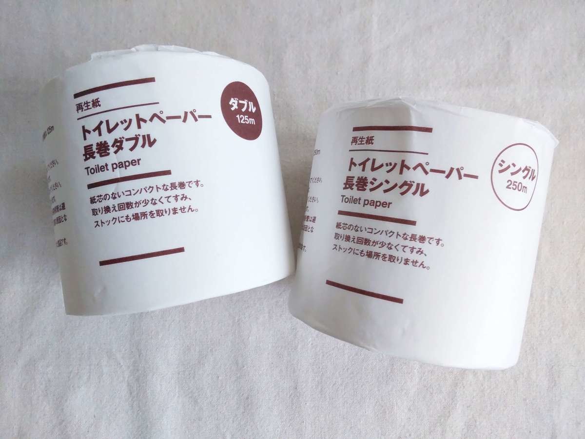 無印良品のトイレットペーパーには「長巻ダブル」と「長巻シングル」の2種類があります。セット売りはなく、1個ずつの販売です。
