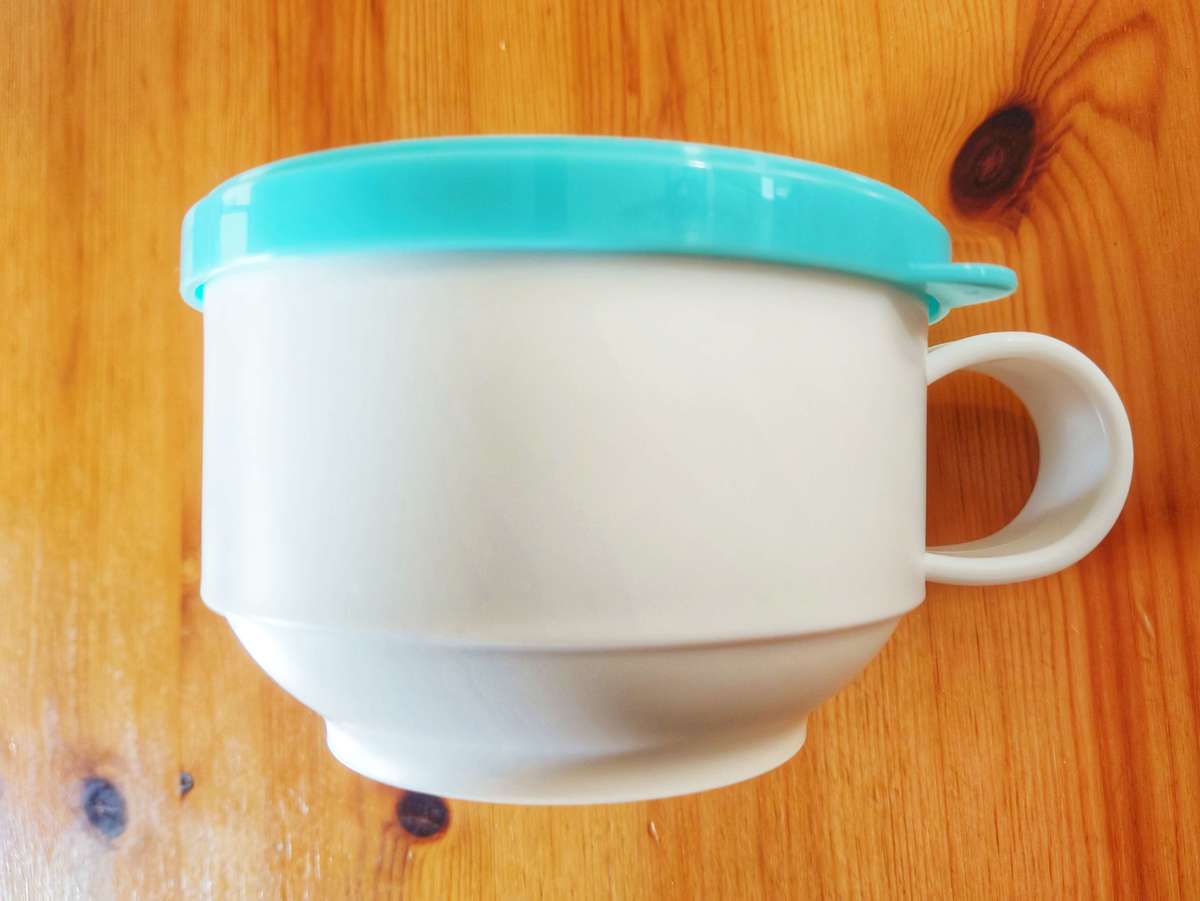 ラップいらずでエコ「ふたをしたままあたためられるスープマグ」