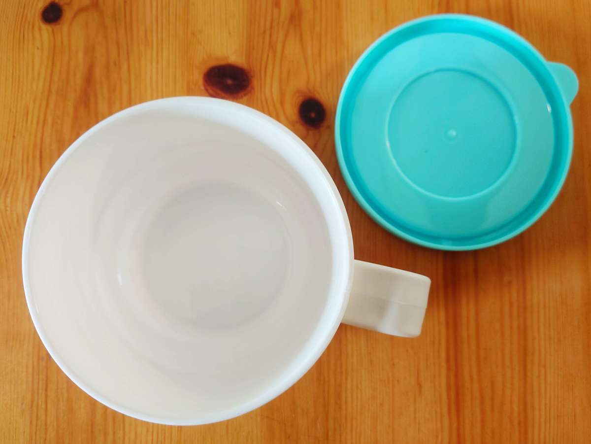 汁物の残りをマグに入れて保存し、食べるときにこのまま温めて食器として使えます。
