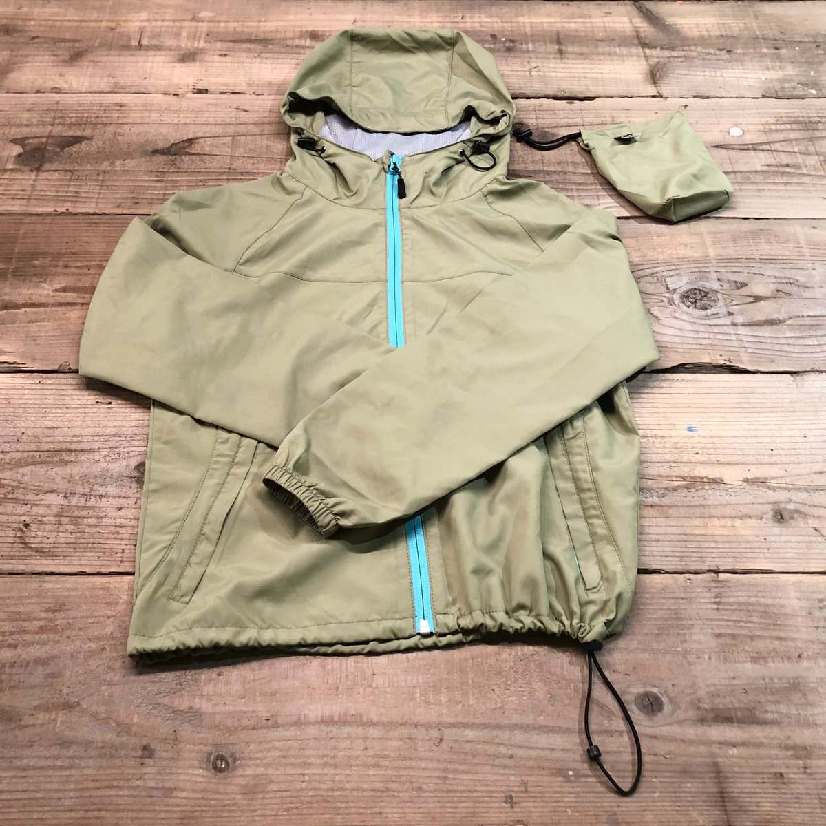 ポシェットは高撥水シェルジャケットの専用袋より少し大きいですが、こちらも便利ですよ。しかも、フードも襟の中に収納できるので2WAYで着こなしがかないます。ぜひ自分に合う物をチェックしてみてくださいね。