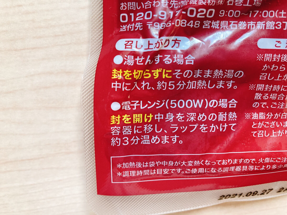 - 電子レンジ500Wで、ラップをかけて3分温める