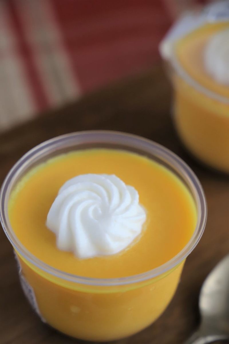 「なめらかな食感のかぼちゃプリンです。ほろ苦いカラメルソースと、くちどけの良いホイップクリームを組合わせました」と、あります。