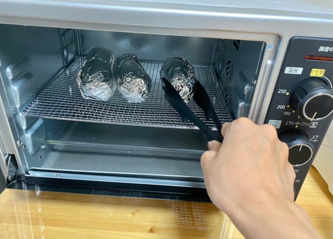 30分焼いたら、再びトースターは開けずに20分蒸らしたら絶品焼き芋の完成です♪