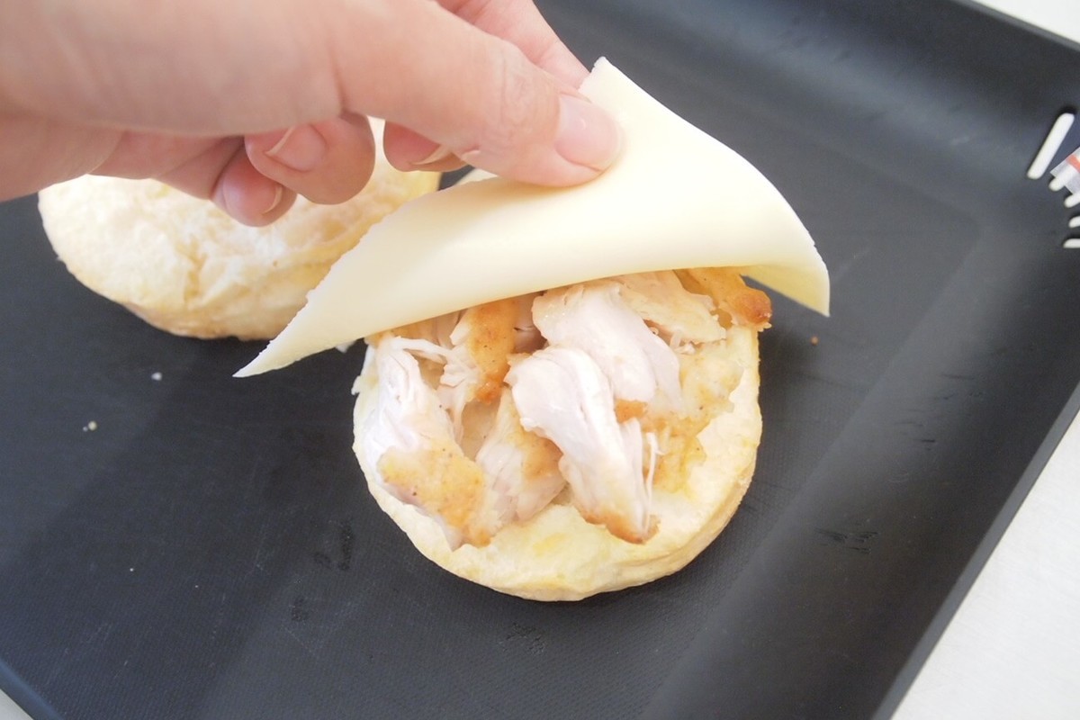 ケンタッキービスケットアレンジ②ビスケットにチキンとチーズをのせる