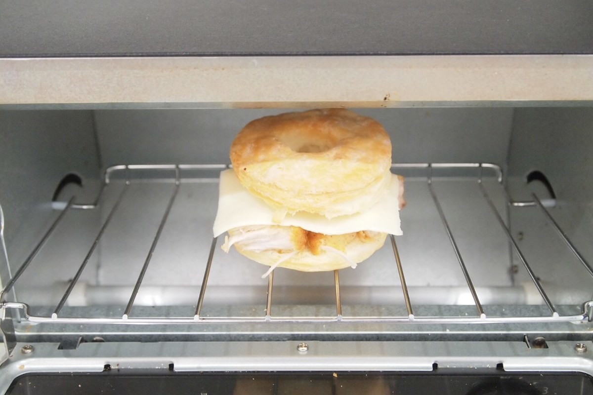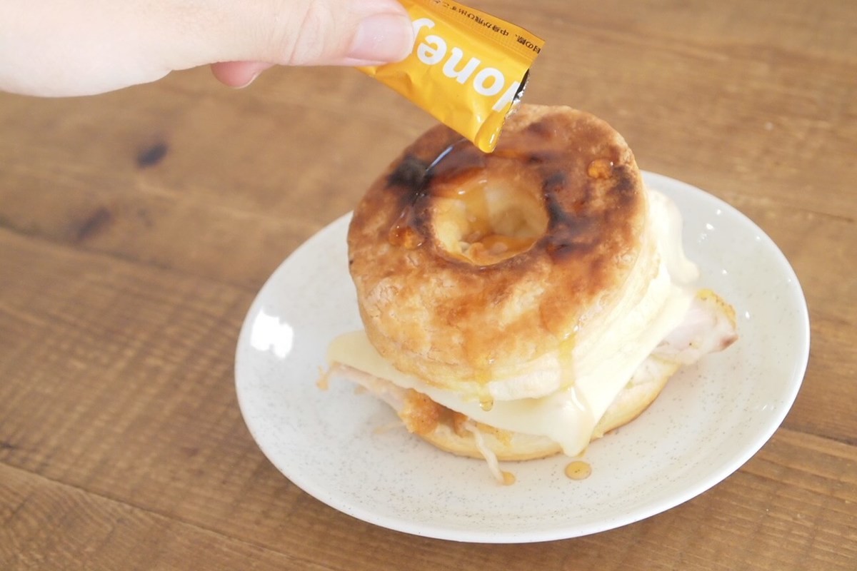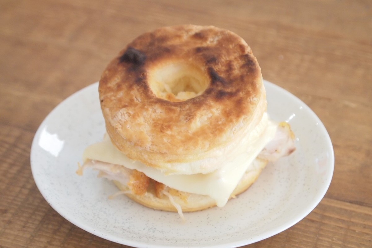 ケンタッキービスケットアレンジ③ビスケットで挟み、焼き色がつくまで焼く