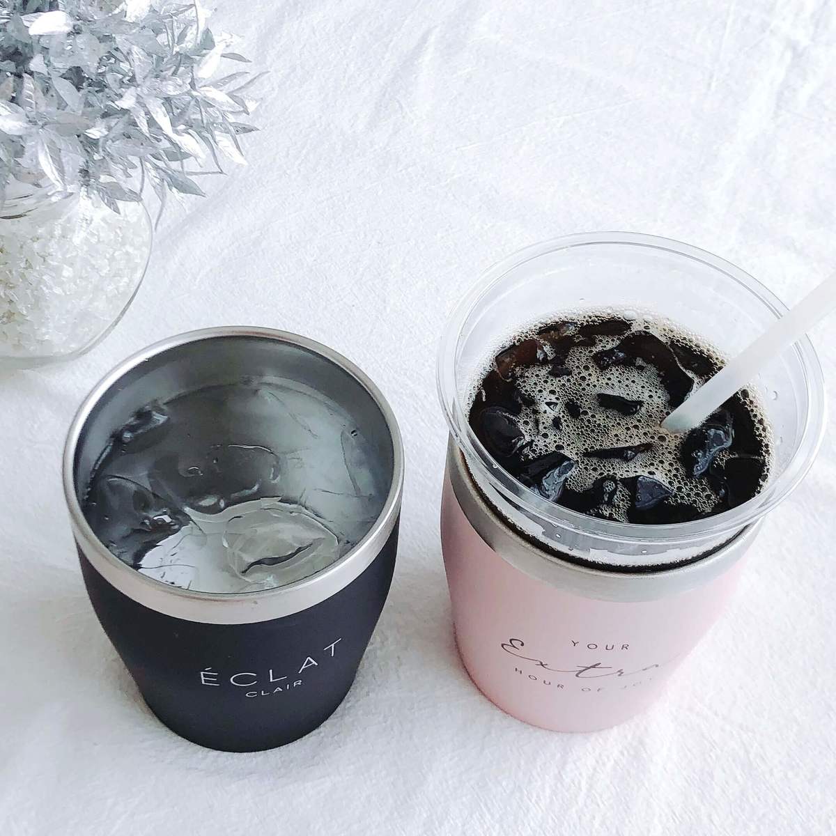 タンブラーに入れることによって保冷効果を得られ、またプラスチックのカップのままだと出てくる結露も、タンブラーに入れることによって直接触れるのを防げます。