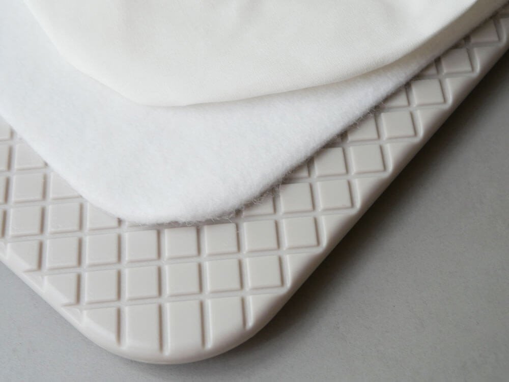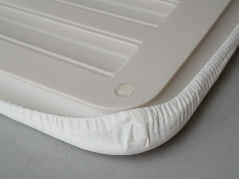 アイロン台の素材には、綿100%の「カバー」、高密度のポリエステル100%の「フェルト」、ポリエチレンの「ボード」を採用。