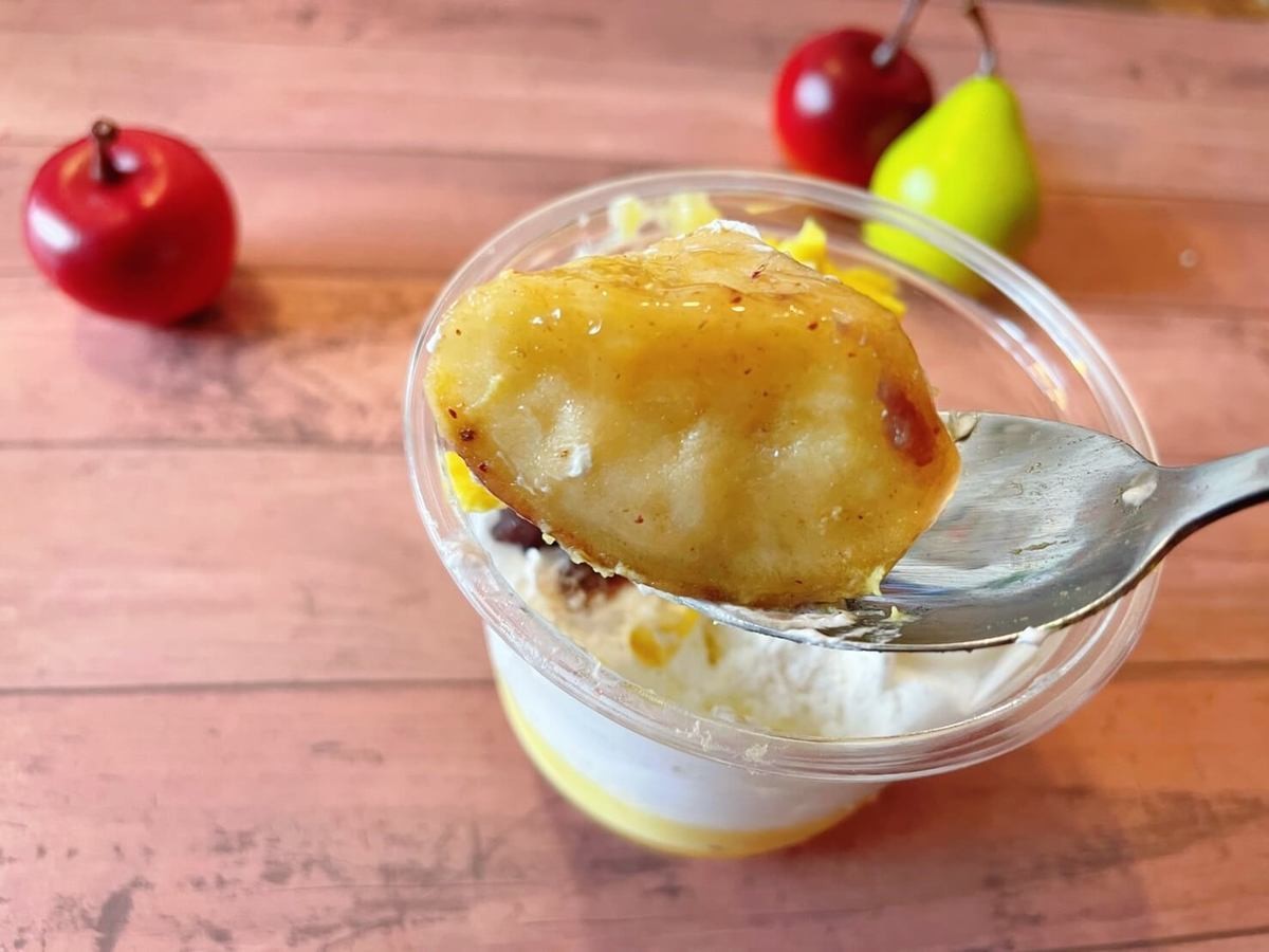なるほど、トッピングにりんごが見当たらないと不思議に思っていたら、1番下にかくれていたとは。