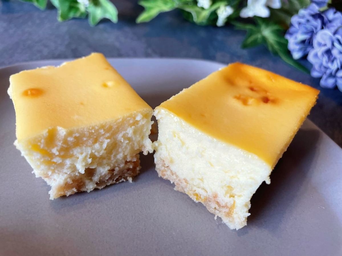 ワクワクしながら蓋を開けると完璧な焼き色のベイクドチーズケーキがお目見え。