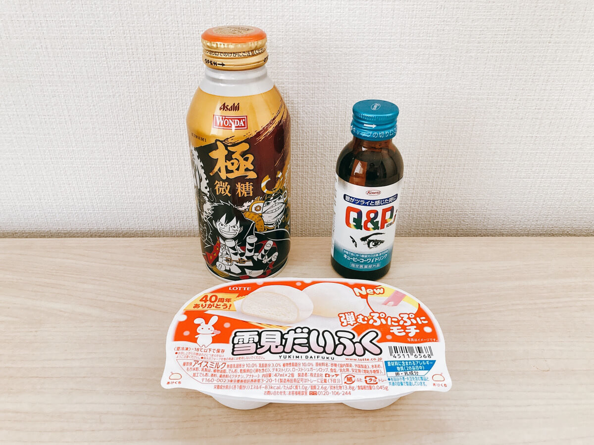 コーヒーとキューピーコーワは、私の仕事用に。 キューピーコーワは、いつも冷蔵庫にストックしているので、1本100円以下で買えて お買い得でした!! 雪見だいふくは、子どもたちのおやつ用として。 税込みで76円なので、近場のスーパーよりも安かったです。