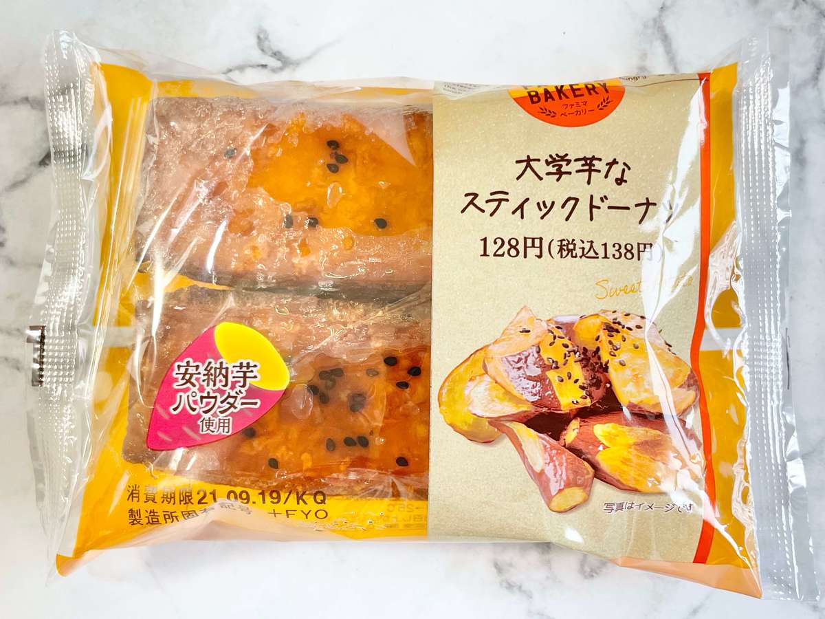 ファミリーマートで購入できる「大学芋なスティックドーナツ」をご紹介しました。