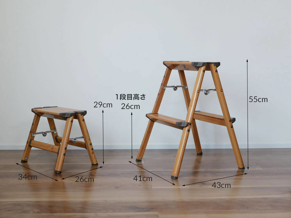 1段、2段タイプをご用意しました。 どちらも耐荷重は約100kgなので、男性でも安心してお使いいただけます。