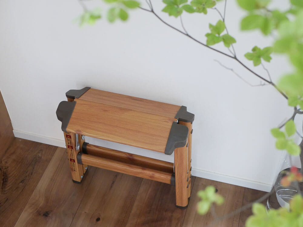 「フォールディングステップ ウッディ」は落ち着いた雰囲気でリビングや寝室にも馴染む木目調がGOOD。