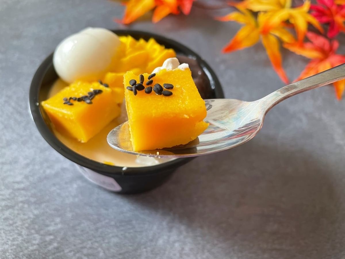 口溶けなめらかなムースに、プルンとした黒蜜わらび餅、全然違う食感が楽しい!どちらも味は甘さが控えめで、お芋そのものの美味しさや甘さを存分に感じることができます!