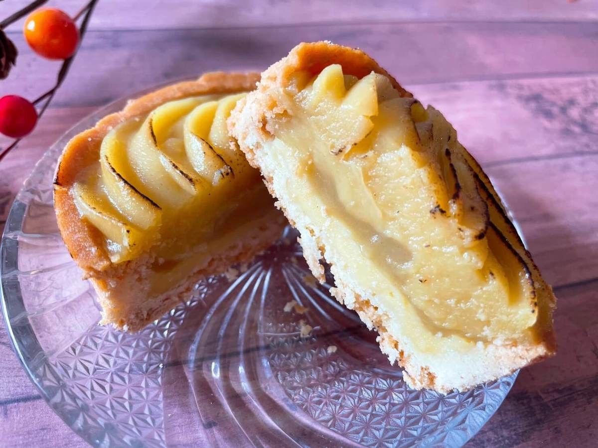 そんな2つのお芋スイーツがひとつになったのが「紅はるかのスイートポテトタルト(210円税込)」。