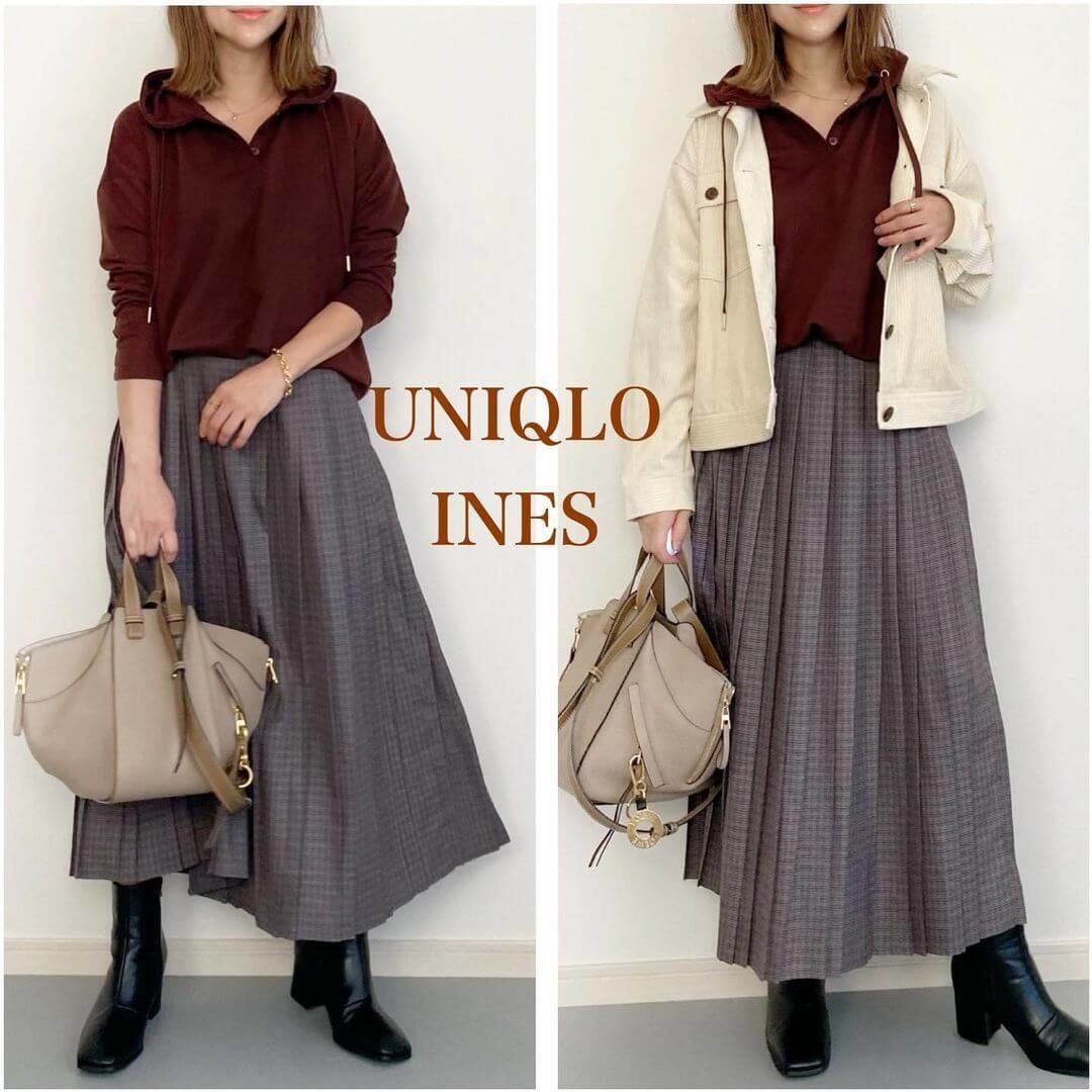ユニクロ×イネスのコラボレーションアイテムから、プリーツスカートに注目してファッショニスタのアレンジに併せてご紹介しました。