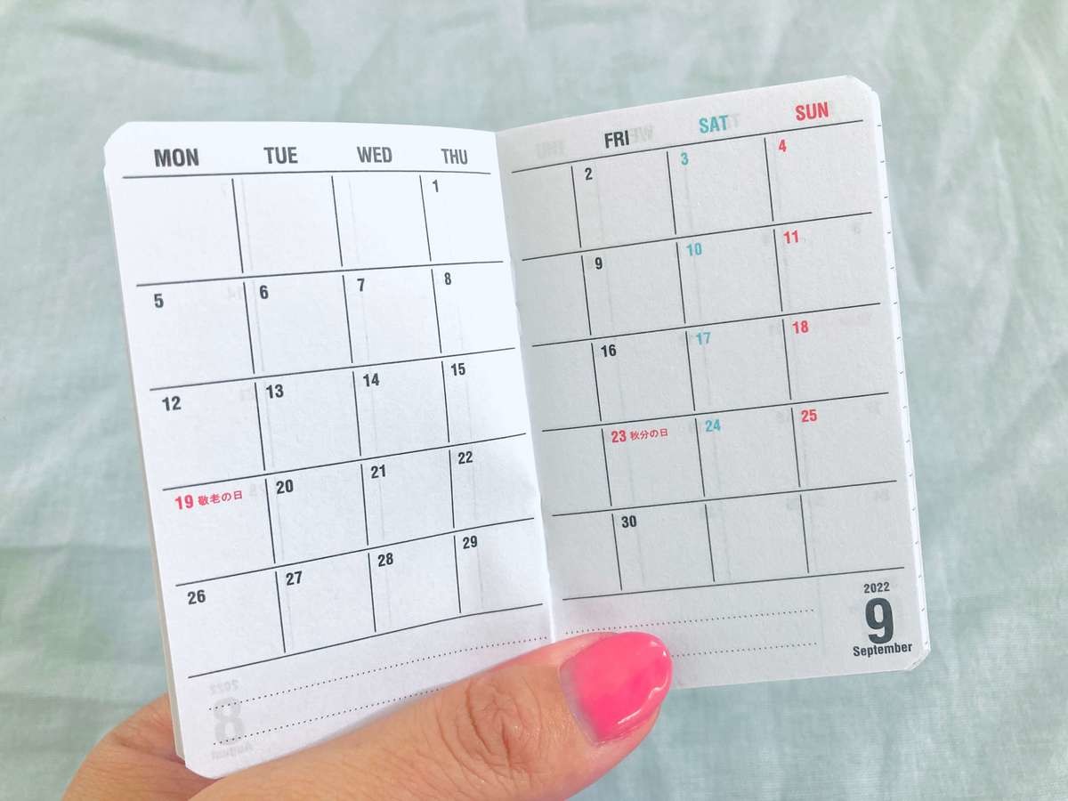 さらにカラー印刷なので、土日祝日も見やすいというメリットも。小さい、おしゃれ、使いやすいと三拍子揃っている人気アイテムです。
