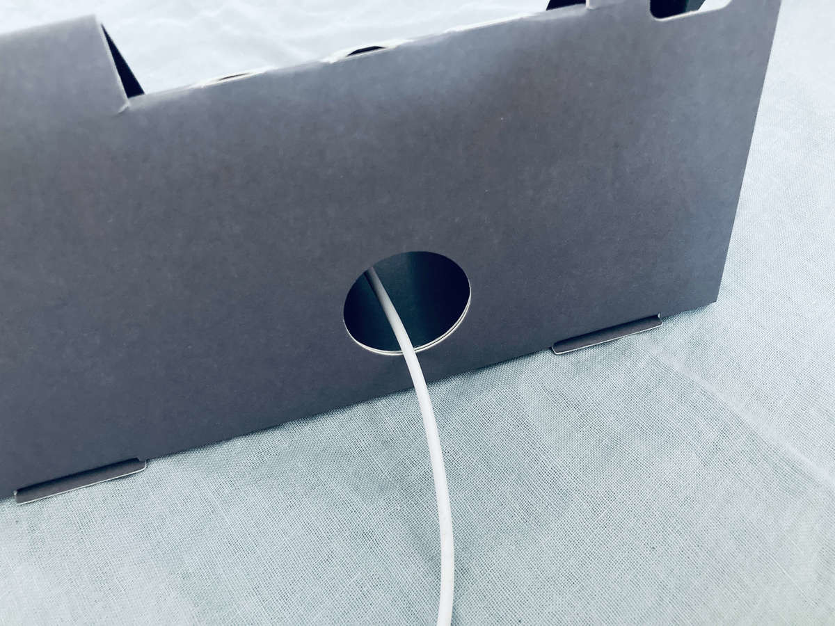 後ろには充電ケーブルを通す穴が開いています。ごちゃごちゃになりそうな充電ケーブルもスッキリ♪