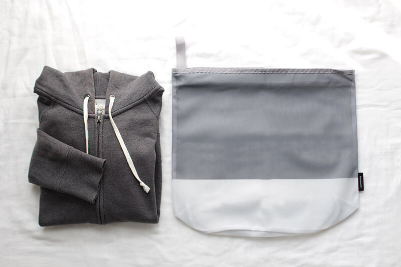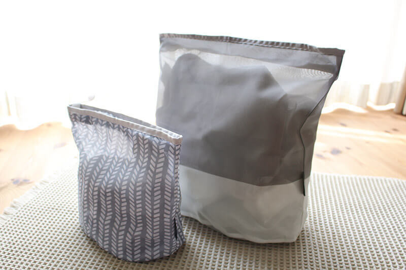中が見えにくい生地感だから、着替えやインナーを目立たず持ち歩けます。そして汚れた衣類をそのまま洗濯機へポンッと入れられる便利さも、ランドリーネットならでは。