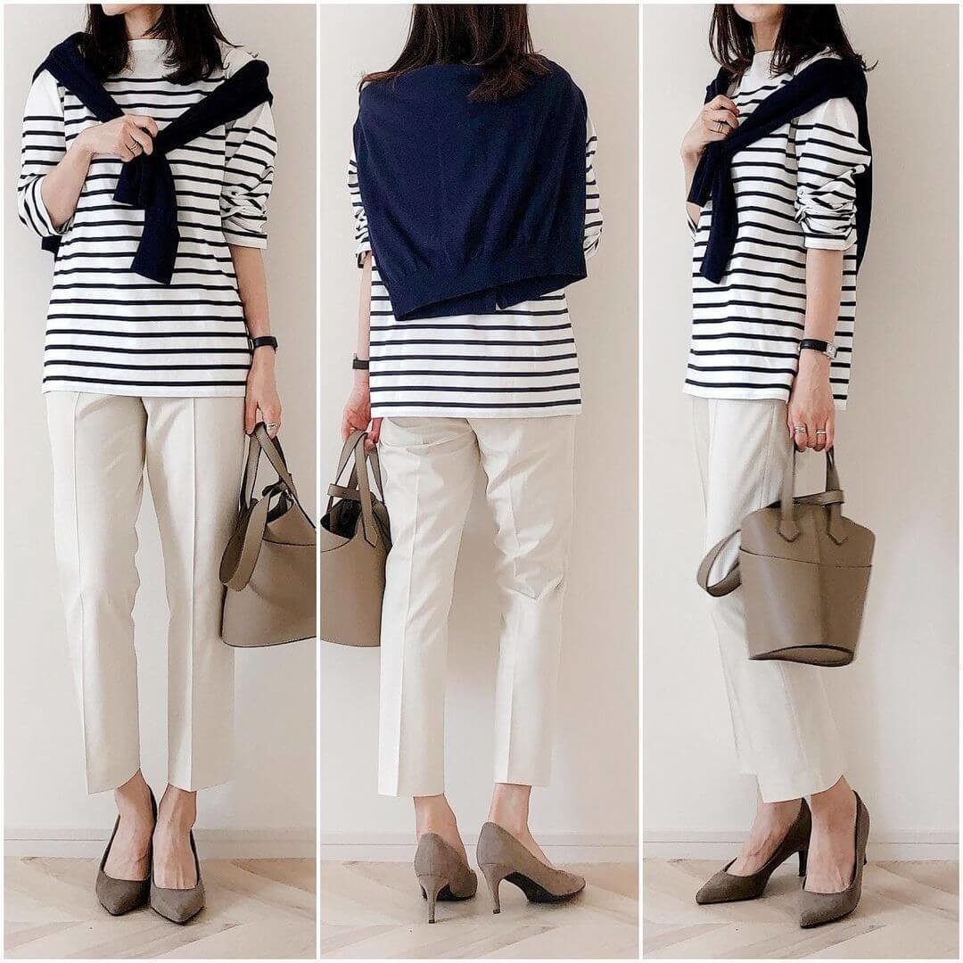 今回はオフホワイトのボーダーTを着こなした、アレンジコーデを見ていきましょう!
