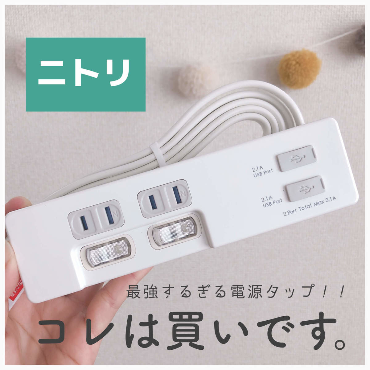 今日はニトリであまり知られていない「便利な電源タップ」を紹介します!