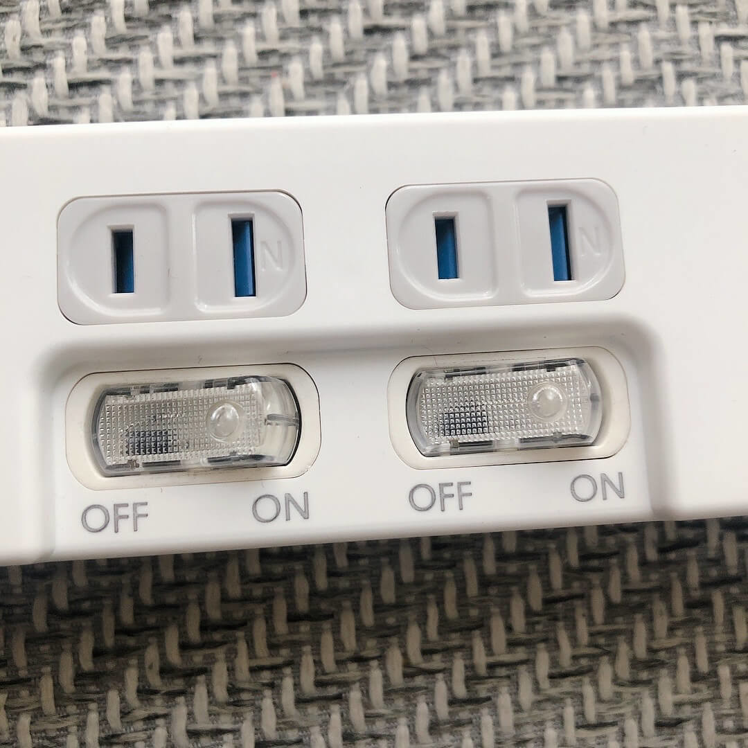各差し込み口の電源を個別にON /OFFできる、節電に便利なスイッチもしっかりついています。