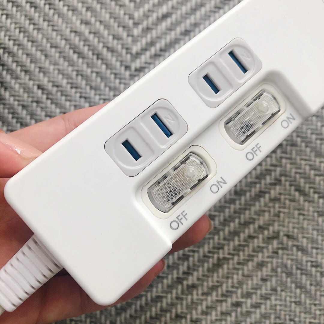 私が使用している2口タイプは、プラグの差し込み口が等間隔ですが、同じシリーズの3口タイプは、1箇所だけ間隔が空いているため、大きなプラグでもぶつからずに差し込めるようになっていました!