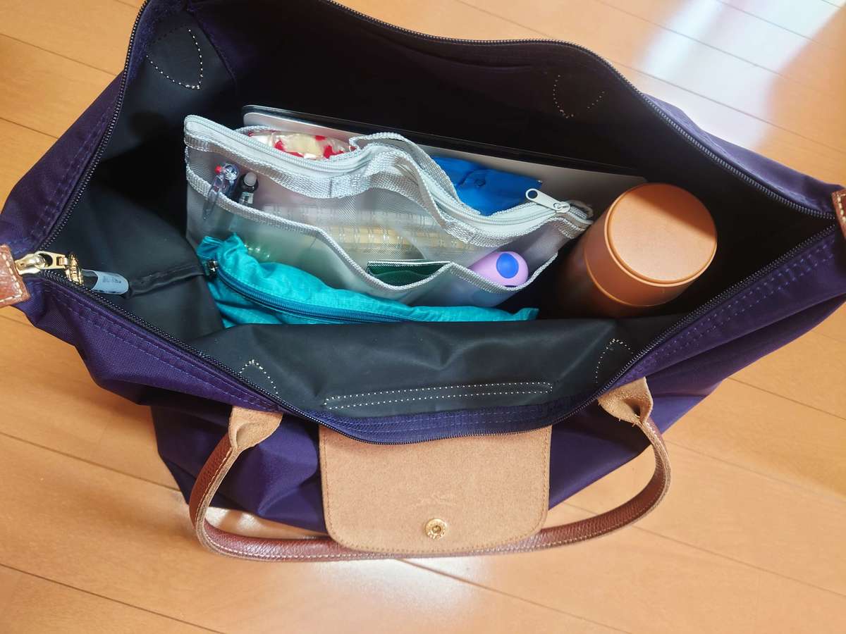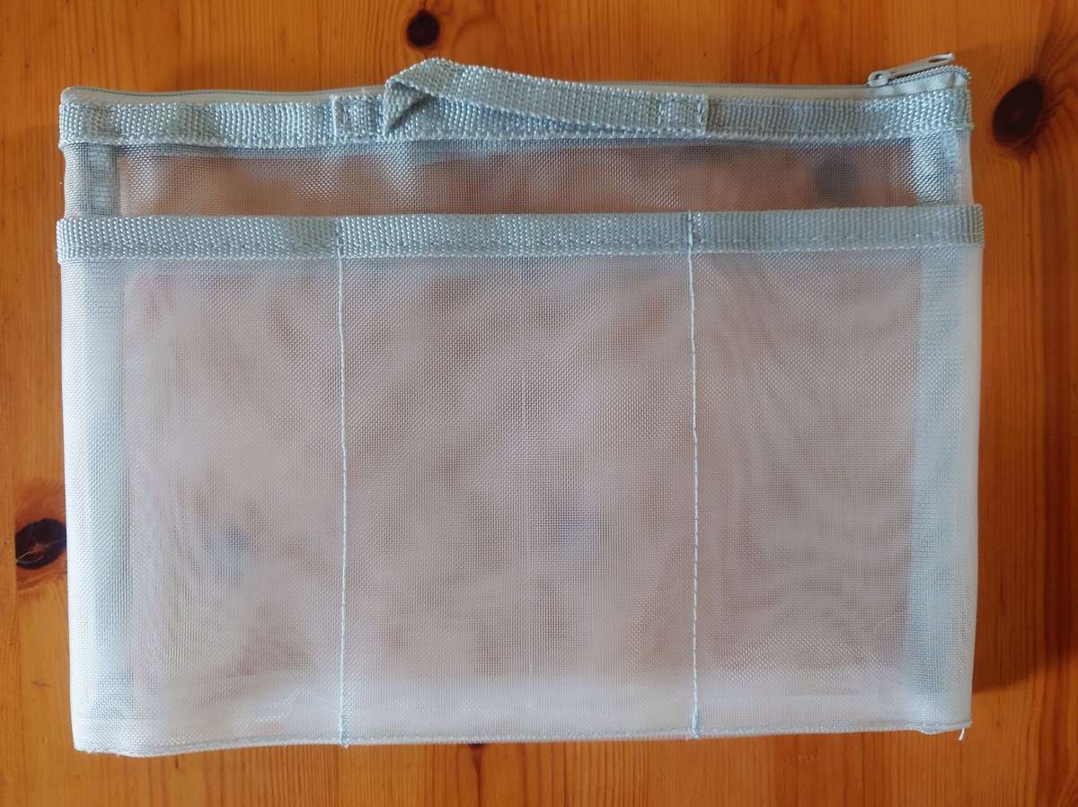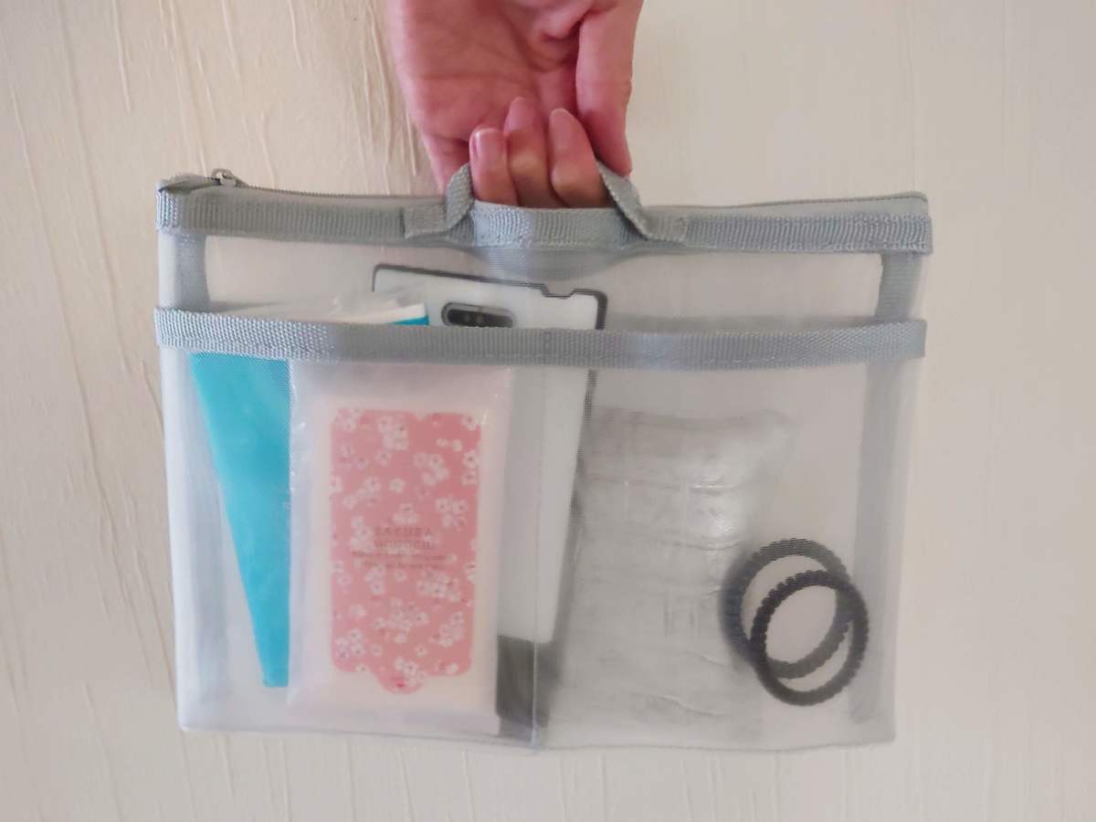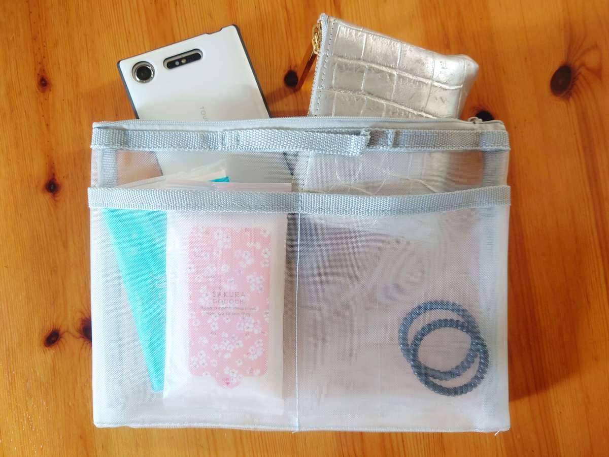 持ち物がバラバラにならず、なによりメッシュなのでバッグインバッグの中身も見え、「どこに何があったっけ?」となりません。
