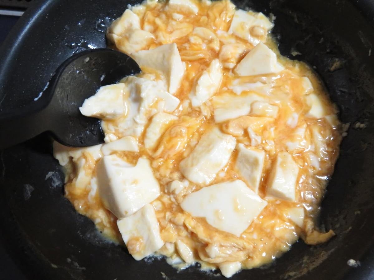 このスプーンで絹ごし豆腐と卵の炒め物を作ってみました。