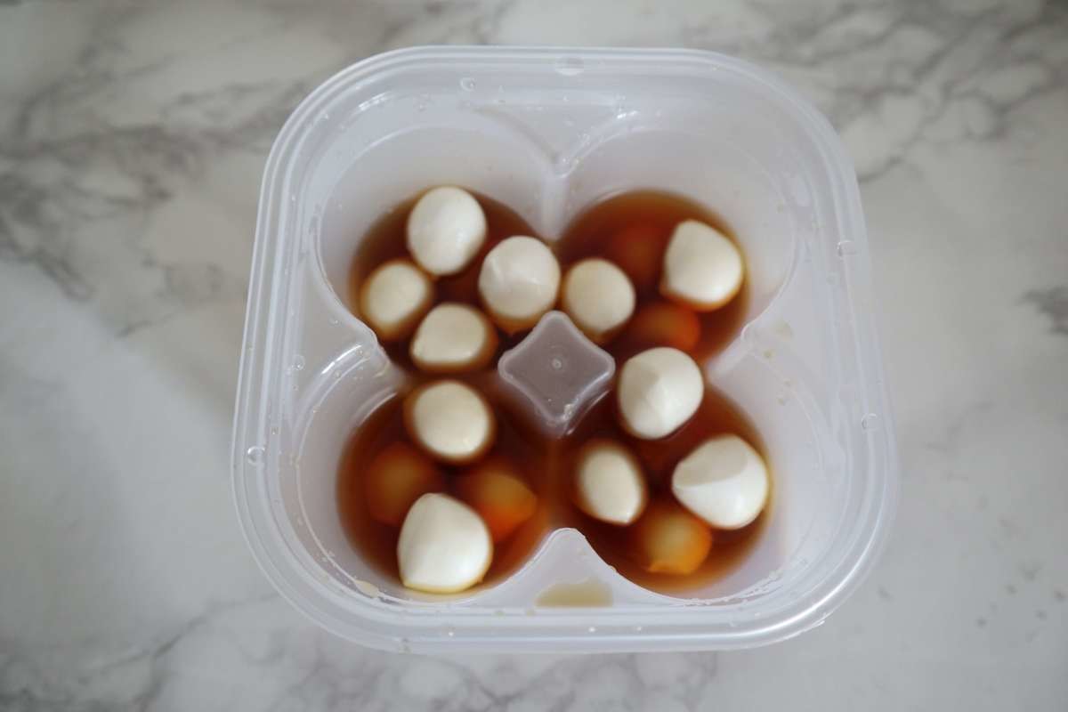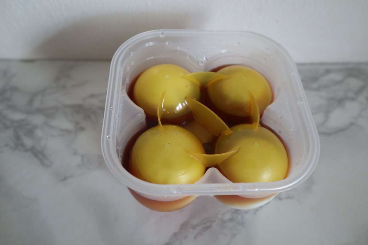これまでは半日ほど漬け置いておいたのですが、味付けたまごメーカーを使えばなんと1時間で完成。