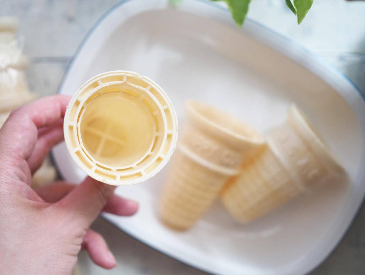 こちらのコーンカップはパリッとした食感で、ミニサイズだから子どもでも食べやすく、おうちで作るパフェなどのトッピングにしてもかわいいです。